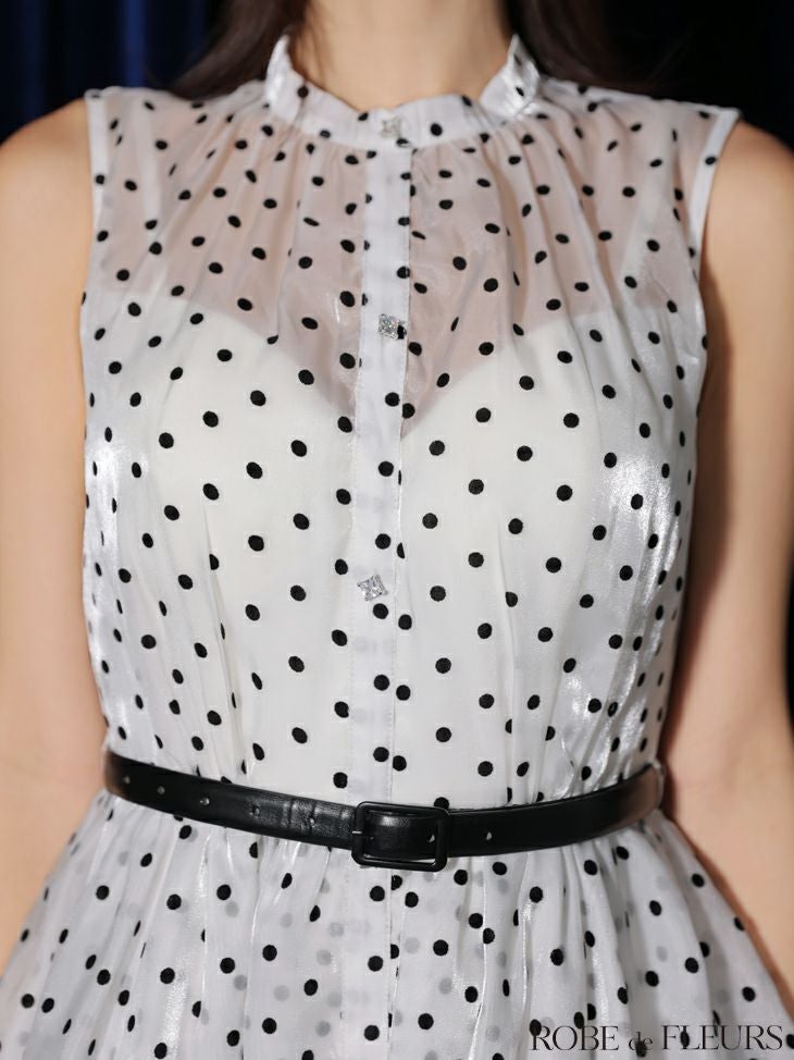3. [ROBEdeFLEURS/ローブドフルール] 高級 ブランド Aラインロングドレス ノースリーブ ドット柄 ウエストベルト オーガンジー エレガント