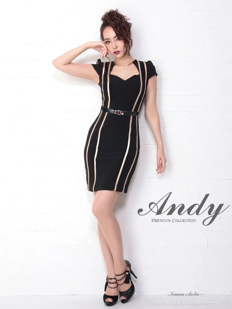 キャバドレス Andy アンディ 高級半袖バストカットウエストベルトシンプルタイトミニドレス