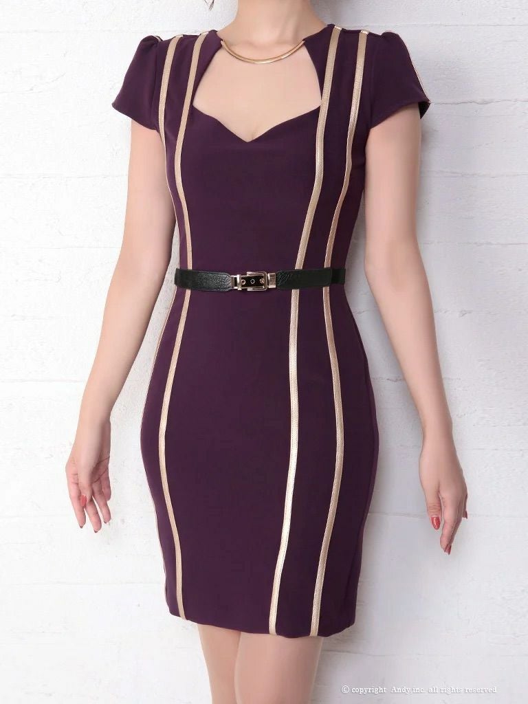 4. [Andy/アンディ] 高級 半袖 バストカット ウエストベルト シンプル 谷間魅せ タイトミニドレス