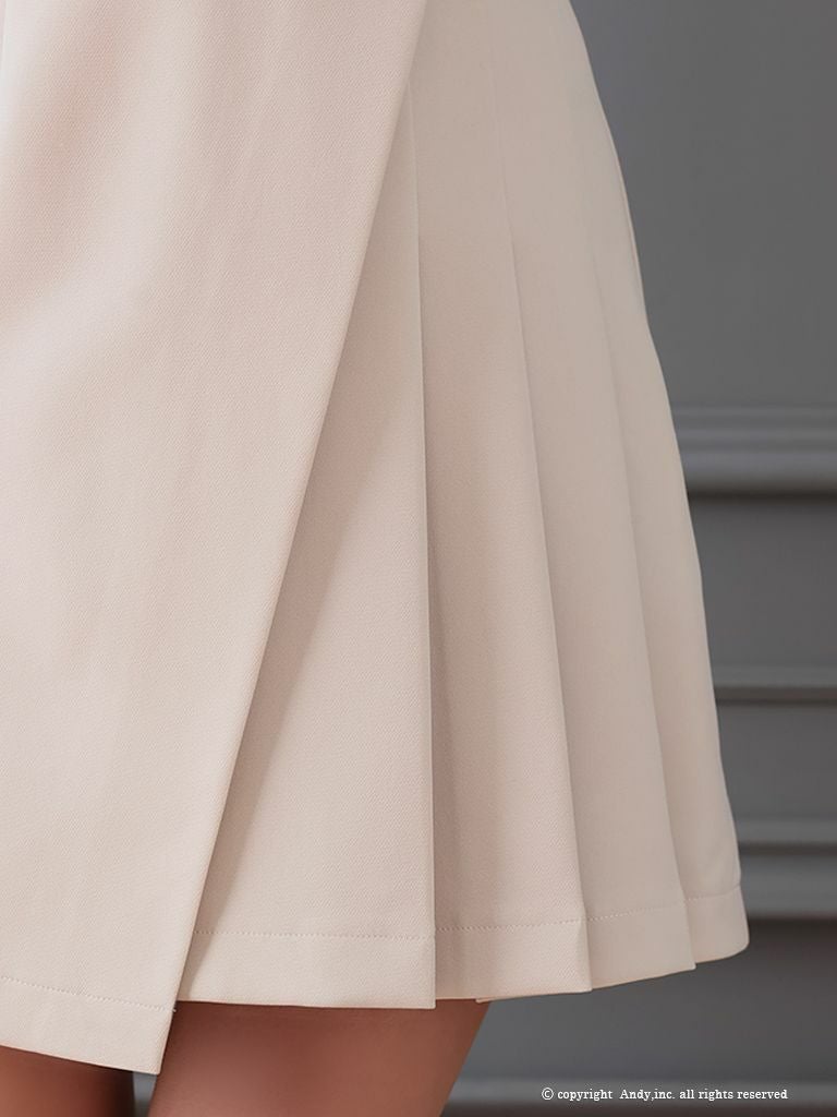 4. [Andy/アンディ] 高級 袖あり 襟付き ウエストベルト ジップデザイン フレアミニドレス