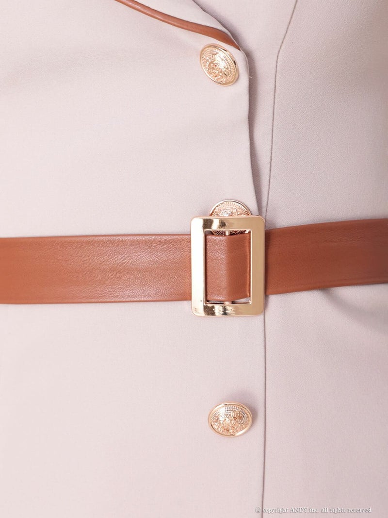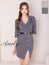 ジャケット風スタイル☆ [Andy/アンディ] 高級 袖あり 五分袖 襟付き スリット ウエストベルト 谷間 タイトミニドレス