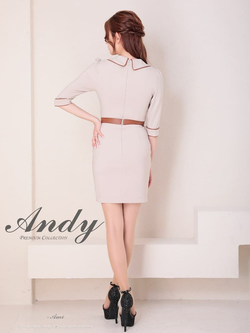 4. [Andy/アンディ] 高級 袖あり 五分袖 襟付き スリット ウエストベルト 谷間 タイトミニドレス