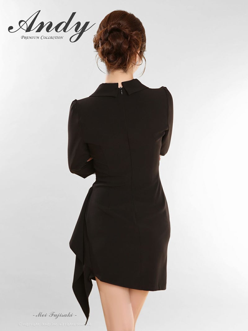 6. [Andy/アンディ] 高級 タイト ミニドレス 谷間 大人 袖あり ウエストベルト 襟付き ジップ
