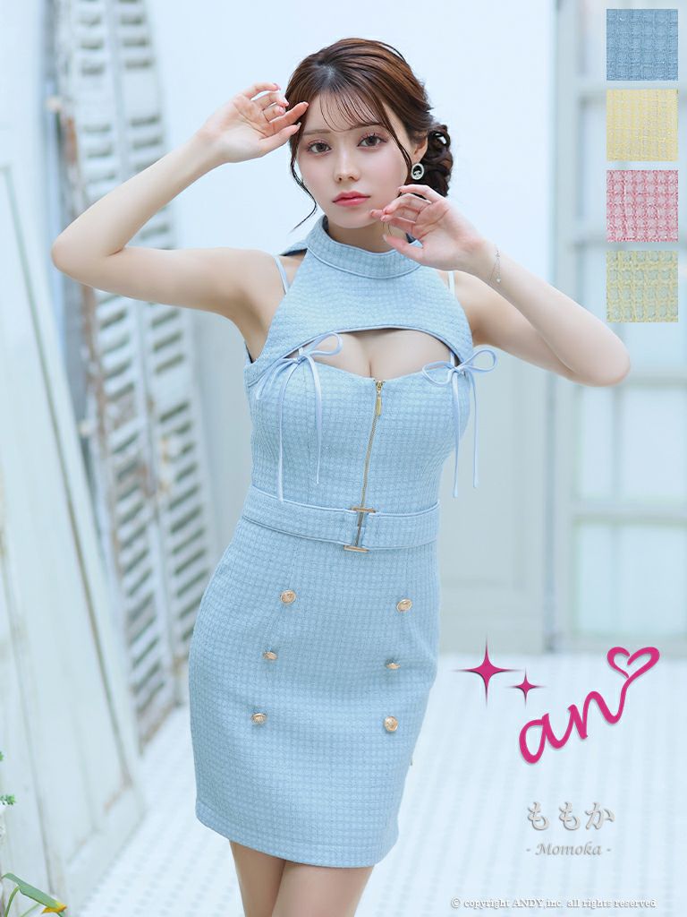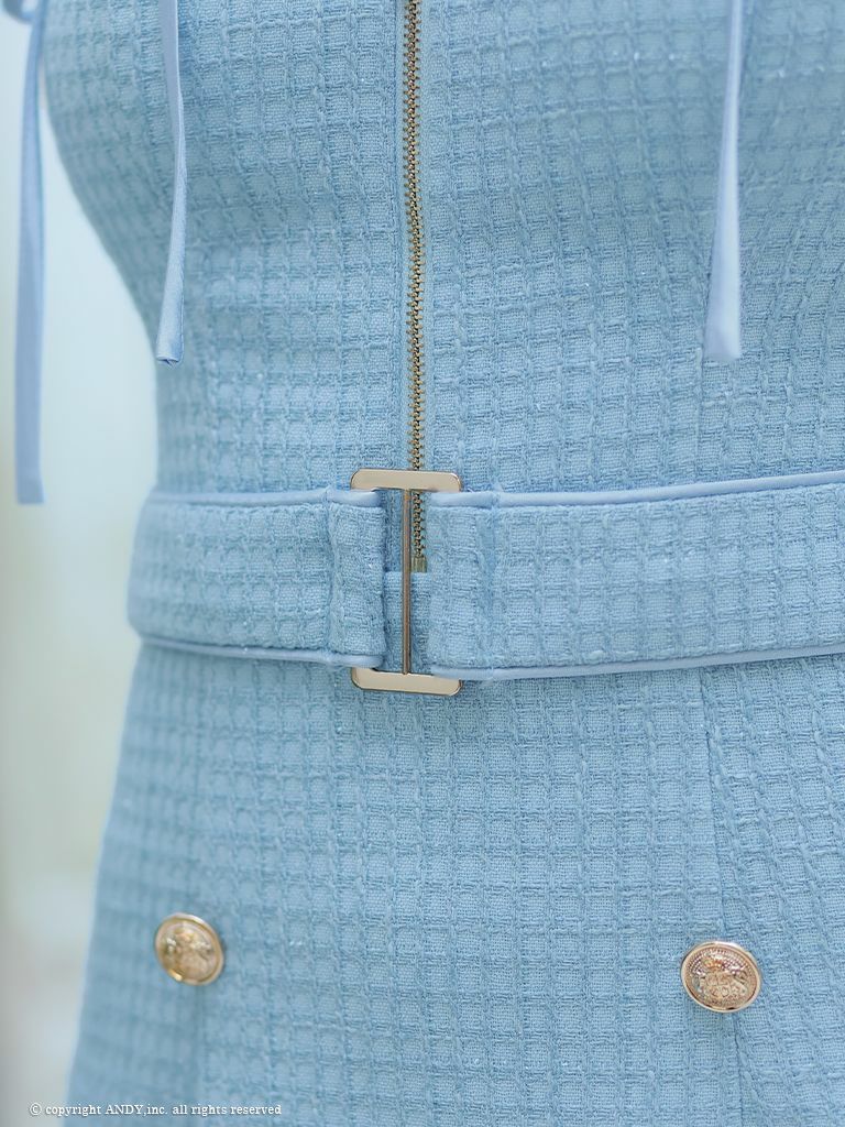 6. [an/アン] 高級ツイード フロントジップ ウエストベルト ホルターネック タイトミニドレス