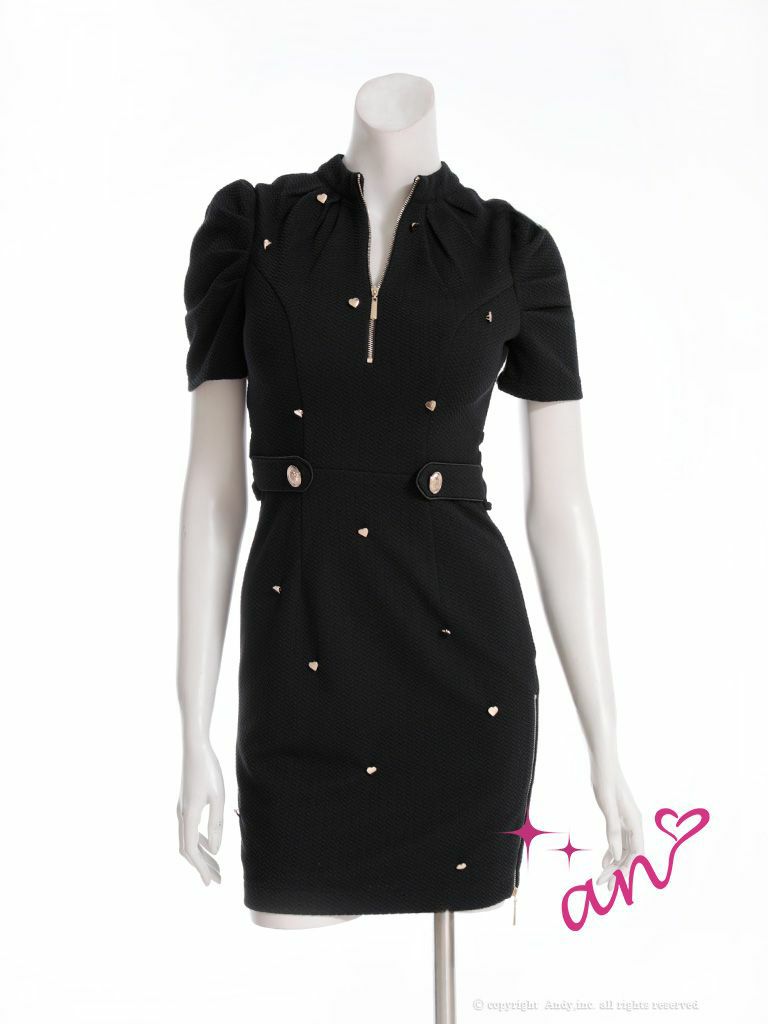 ワンカラーにハートスタッズが煌めく♡ [an/アン] 高級 半袖 ジップ ハートスタッズ ウエストベルト 背中魅せ タイトミニドレス