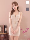 6. [an/アン] 高級 ブランド タイトミニドレス ノースリーブ 谷間 フロントジップ ウエストベルト ワンカラー