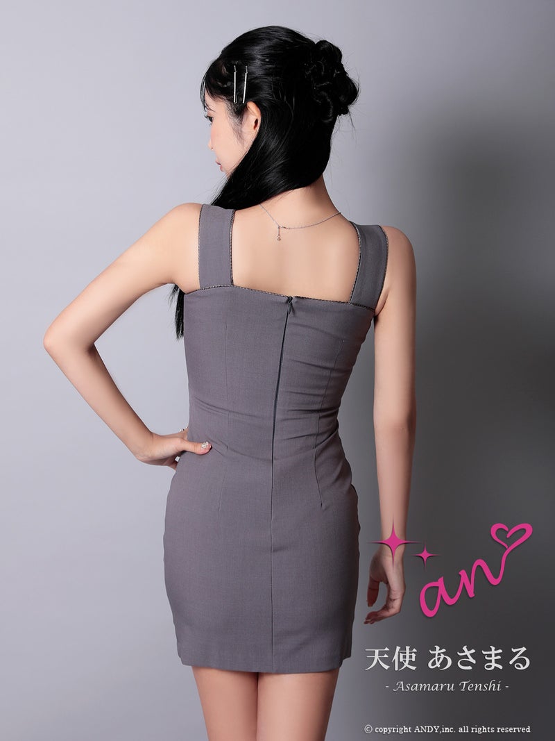 4. [an/アン] 高級 ブランド タイトミニドレス ノースリーブ 谷間 フロントジップ ウエストベルト ワンカラー