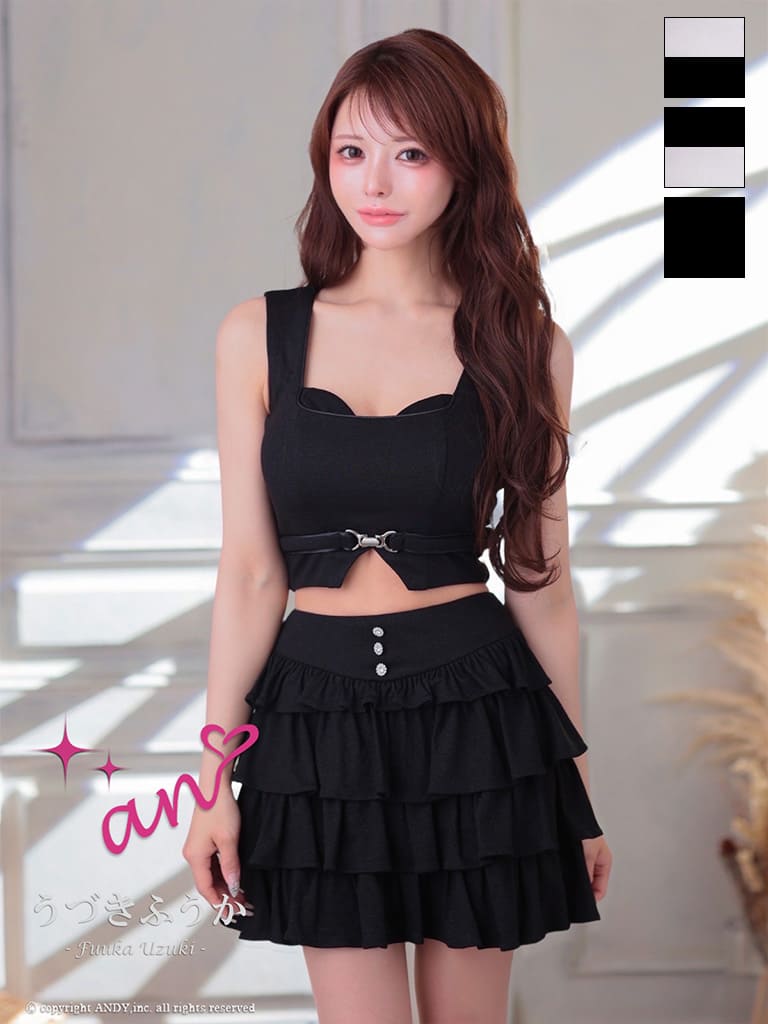甘くなり過ぎない最適なバランスのセットアップ♡ [an/アン] 高級 ノースリーブ フレアミニドレス バストカット セットアップ ウエストベルト