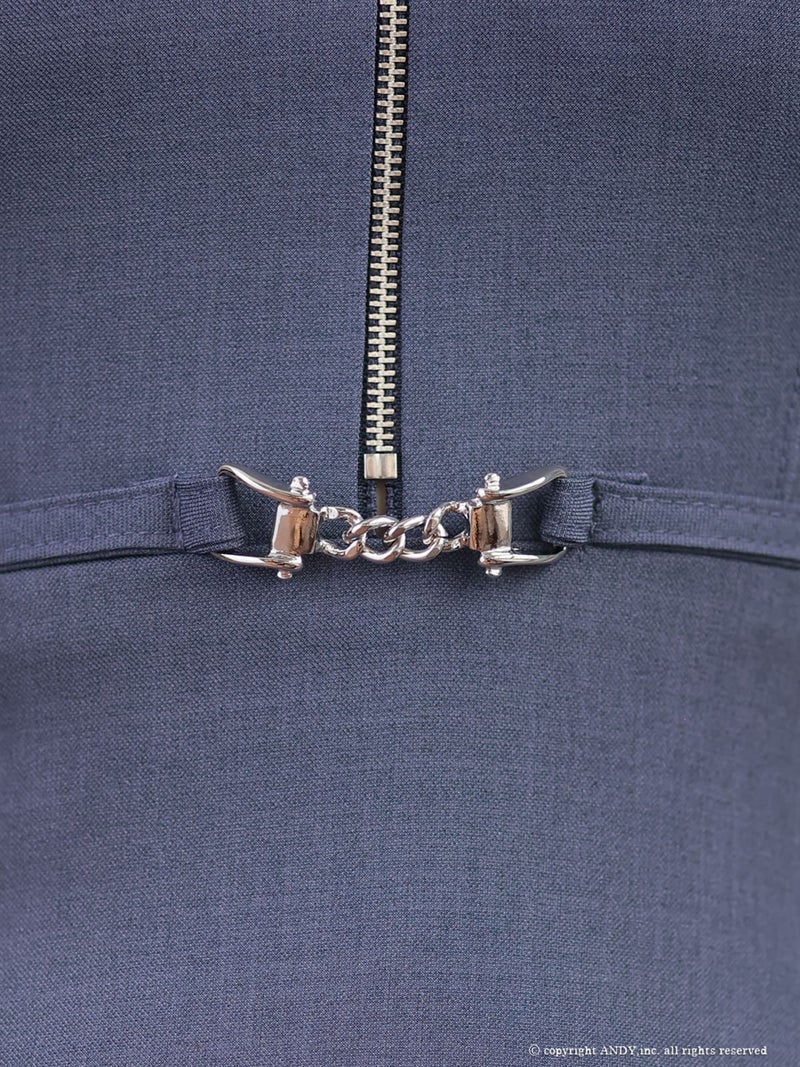 5. [an/アン] 高級 ノースリーブ フレアミニドレス バストカット ジップ ウエストベルト プリーツ