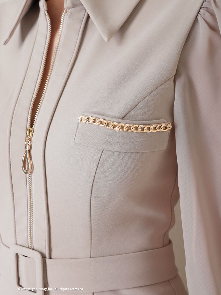 5. [AndyGLAMOROUS/アンディグラマラス] 高級ノースリーブ ジップ シースルースリーブ ウエストベルト タイトミニドレス