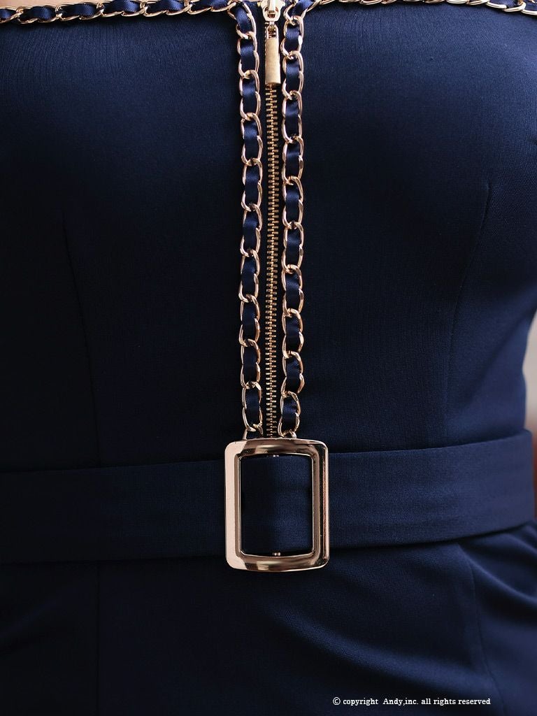 露出控えめで合わせやすい☆ [AndyGLAMOROUS/アンディグラマラス] 高級ノースリーブ ウエストベルト ジップ チェーン シンプル タイトミニドレス