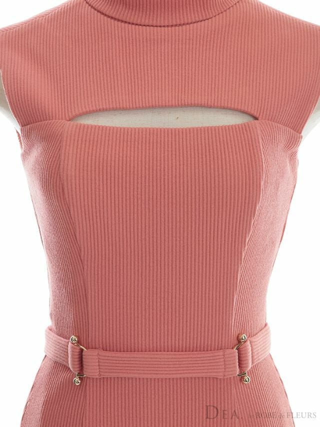 DEA.byROBEdeFLEURS ディアバイローブドフルール 高級ワンカラーハイネックバストカットアウトベルトデザインノースリーブタイトミニドレス