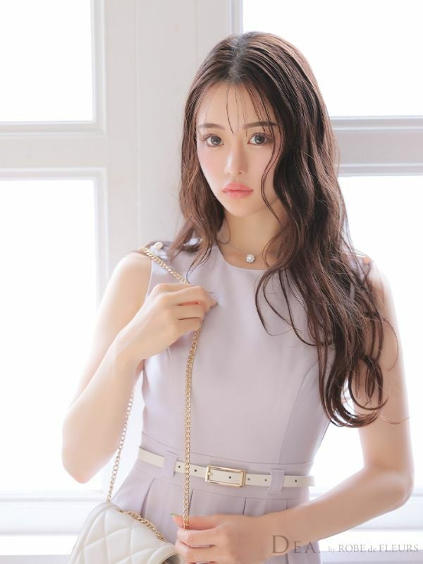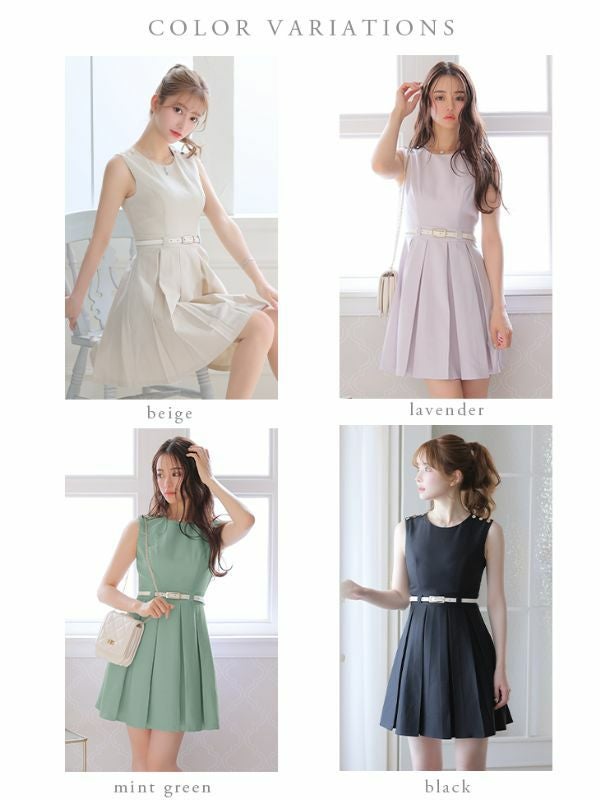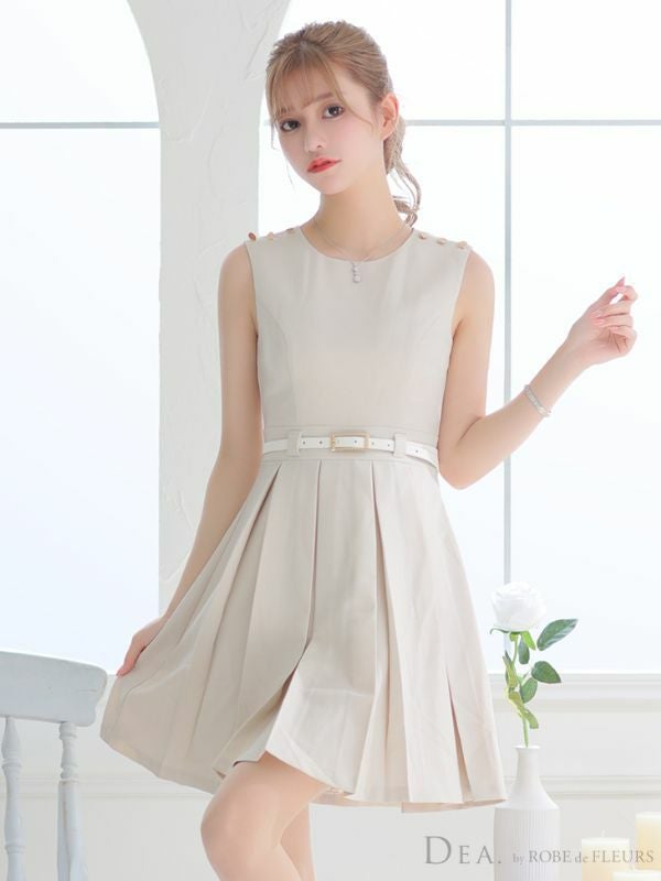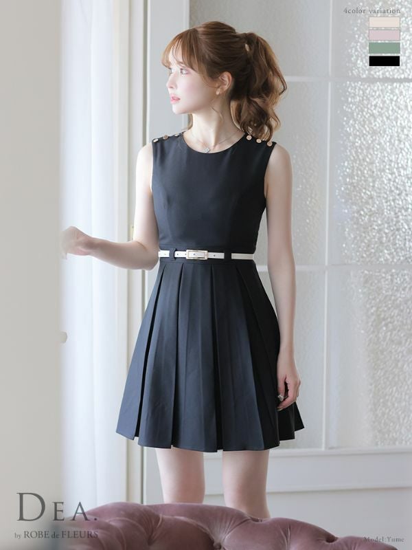 4. [DEA.byROBEdeFLEURS/ディアバイローブドフルール] 高級ベルト付きワンカラープリーツノースリーブフレアミニワンピースドレス
