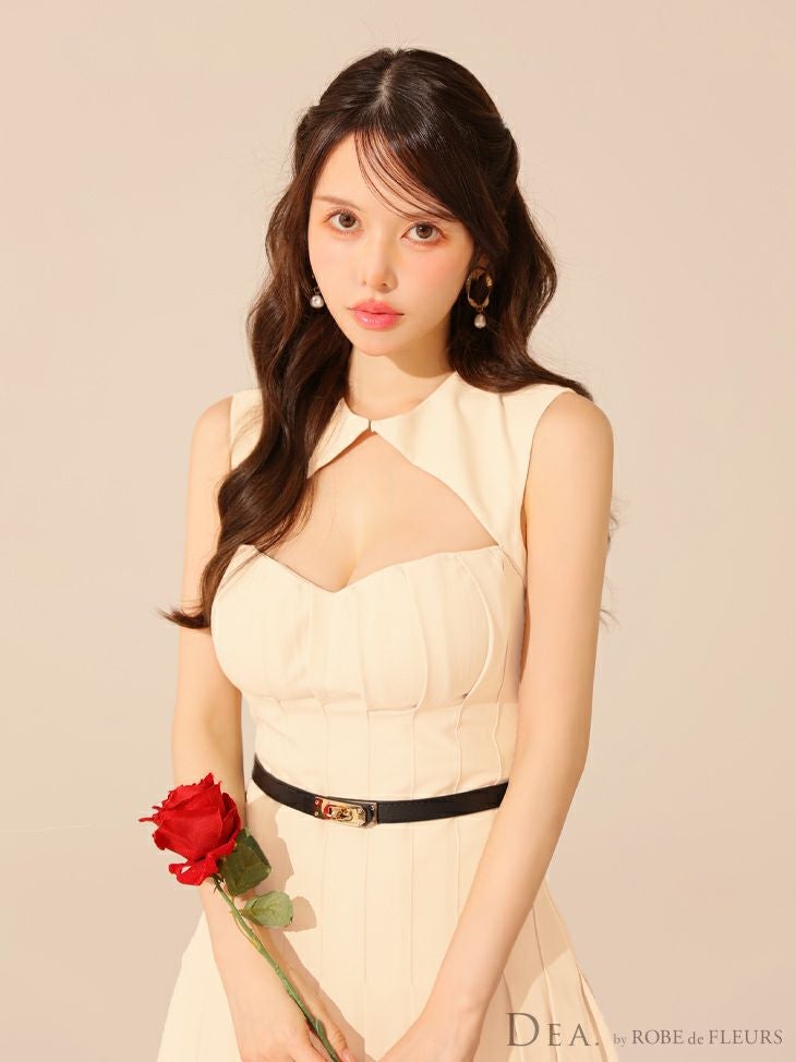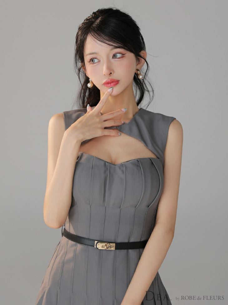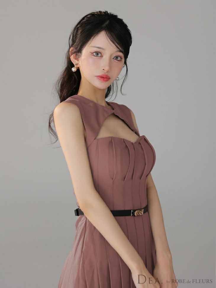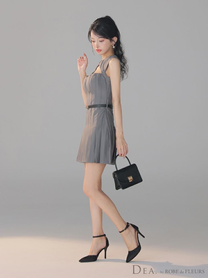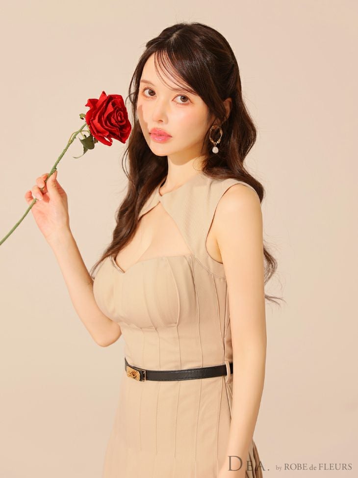 大人の色気を纏う♡ [DEA.byROBEdeFLEURS/ディアバイローブドフルール] 高級 ブランド ワンピース Aラインミニドレス 谷間 ノースリーブ ウエストベルト付き プリーツ