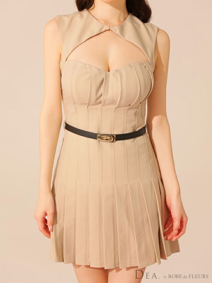 5. [DEA.byROBEdeFLEURS/ディアバイローブドフルール] 高級 ブランド ワンピース Aラインミニドレス 谷間 ノースリーブ ウエストベルト付き プリーツ