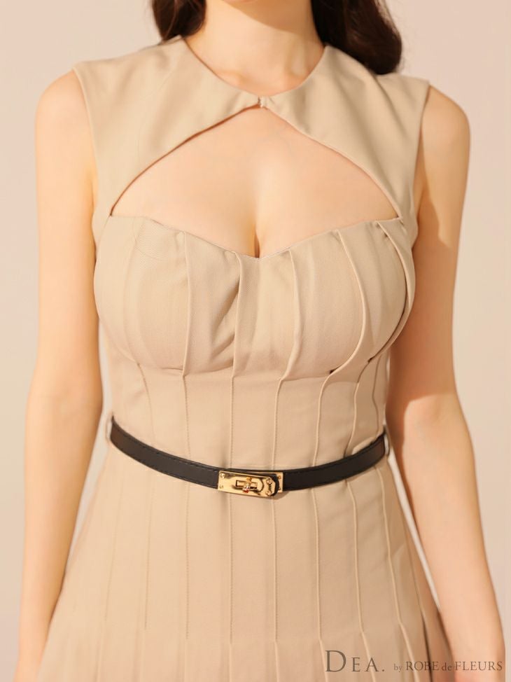 6. [DEA.byROBEdeFLEURS/ディアバイローブドフルール] 高級 ブランド ワンピース Aラインミニドレス 谷間 ノースリーブ ウエストベルト付き プリーツ