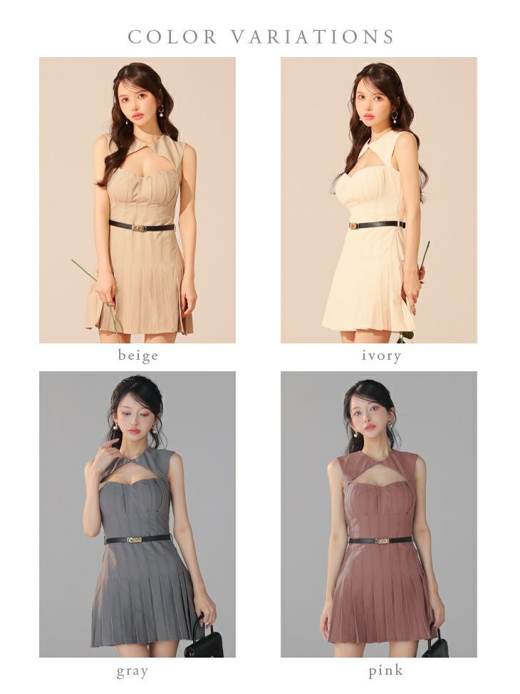 4. [DEA.byROBEdeFLEURS/ディアバイローブドフルール] 高級 ブランド ワンピース Aラインミニドレス 谷間 ノースリーブ ウエストベルト付き プリーツ