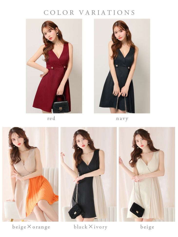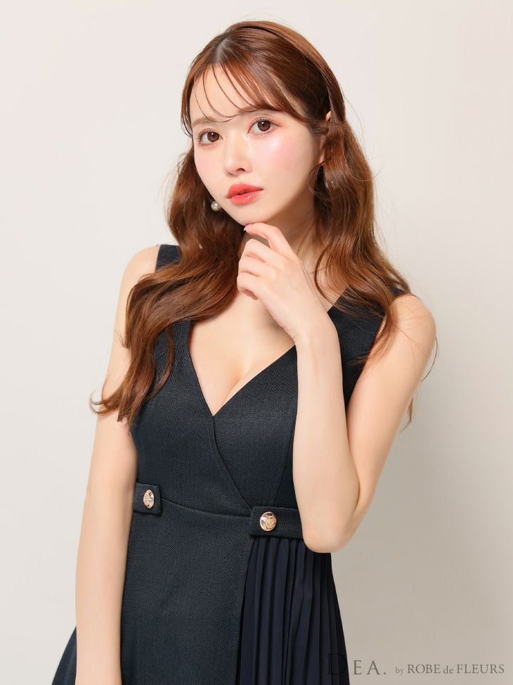 キャバドレス ミニドレス DEA.byROBEdeFLEURS ディアバイローブドフルール 高級ノースリーブウエストベルトプリーツ切替フレアミニドレス