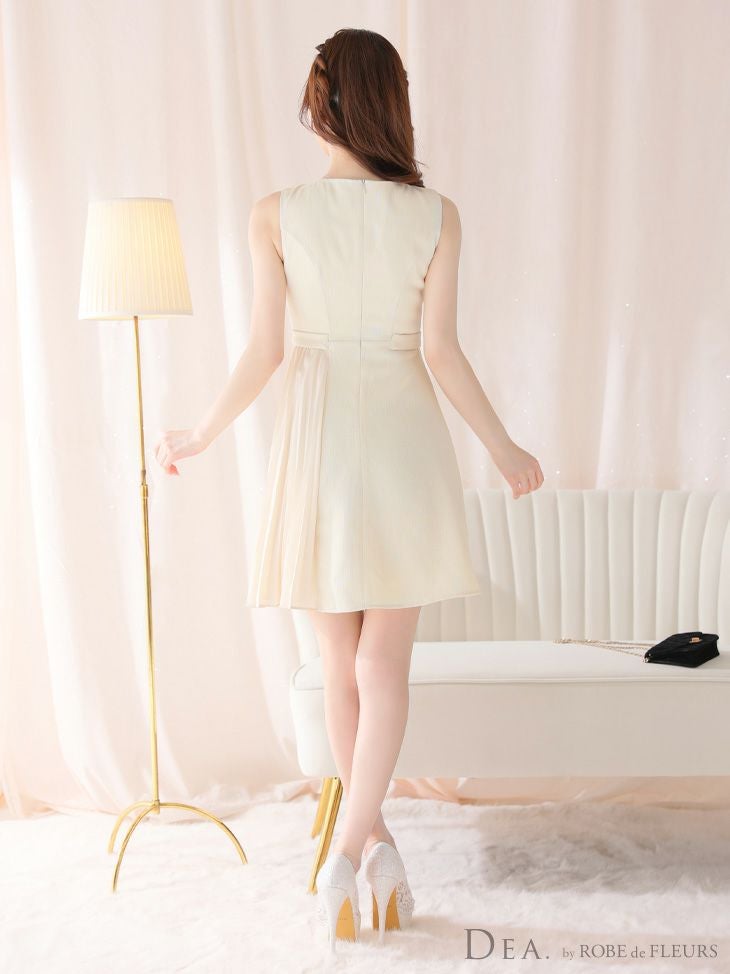 プリーツ切替でお洒落度を高める☆ [DEA.byROBEdeFLEURS/ディアバイローブドフルール] 高級ノースリーブウエストベルトプリーツ切替フレアミニドレス