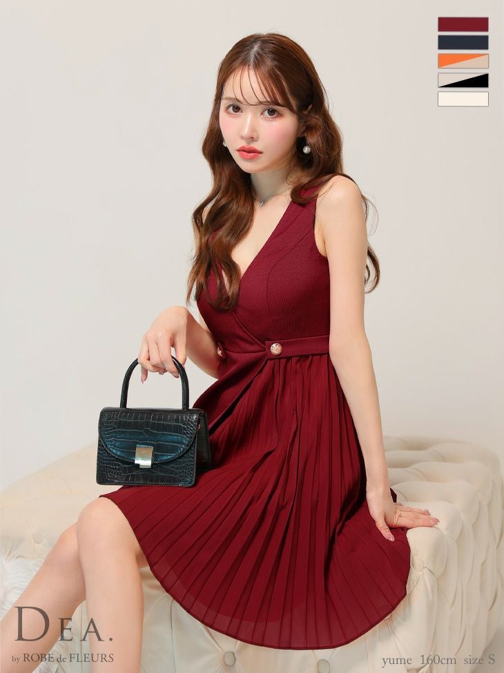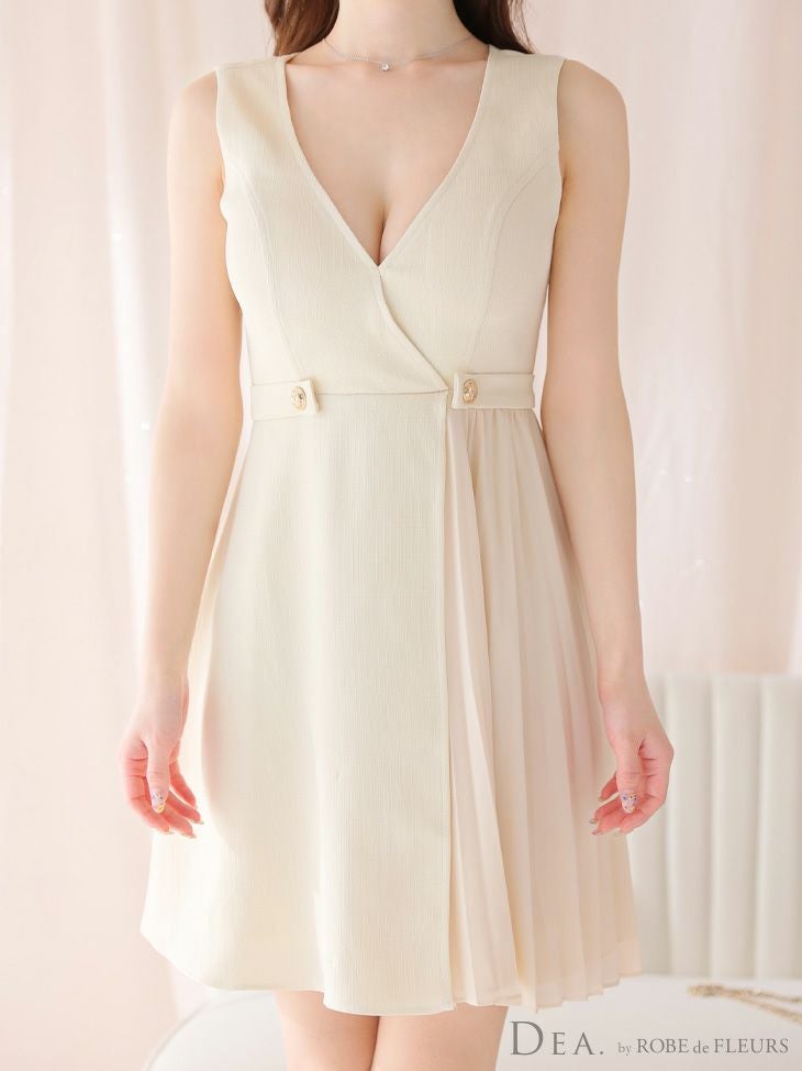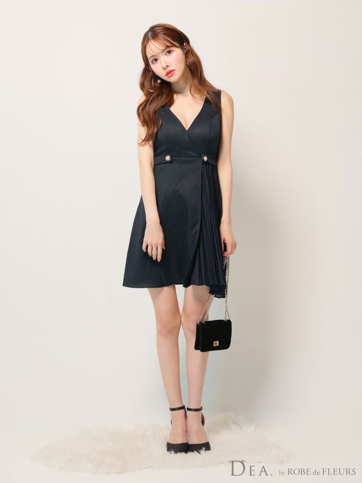 キャバドレス ミニドレス DEA.byROBEdeFLEURS ディアバイローブドフルール 高級ノースリーブウエストベルトプリーツ切替フレアミニドレス