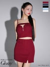5. SALE [ROBEdeFLEURSGlossy/ローブドフルールグロッシー] 高級 バストカット ジップ ワンカラー ウエストベルト セットアップ 2way キャミソール 谷間魅せ タイトミニドレス