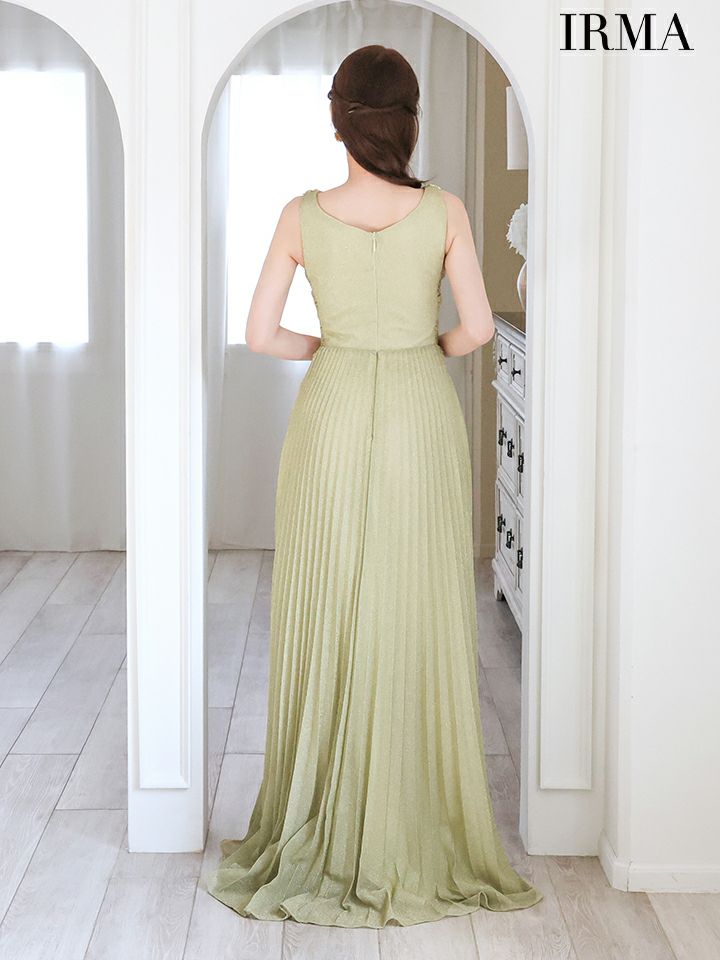 4. [IRMA/イルマ] 高級クロスノースリーブウエストカットビジュープリーツラメAラインロングドレス
