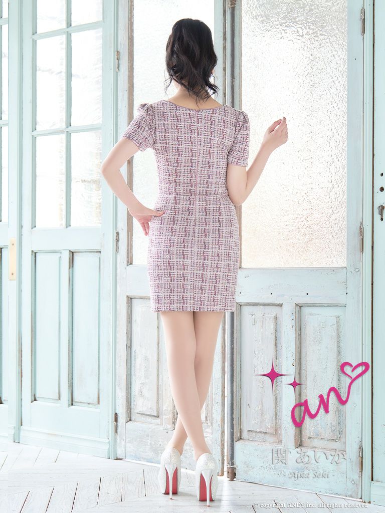 キャバドレス Andy アンディ 高級 スクエアネック ツイード ウエストカット 半袖 タイトミニドレス