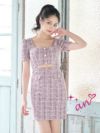 ツイード生地で可愛らしく☆ [an/アン] 高級スクエアネックツイードウエストカット半袖タイトミニドレス