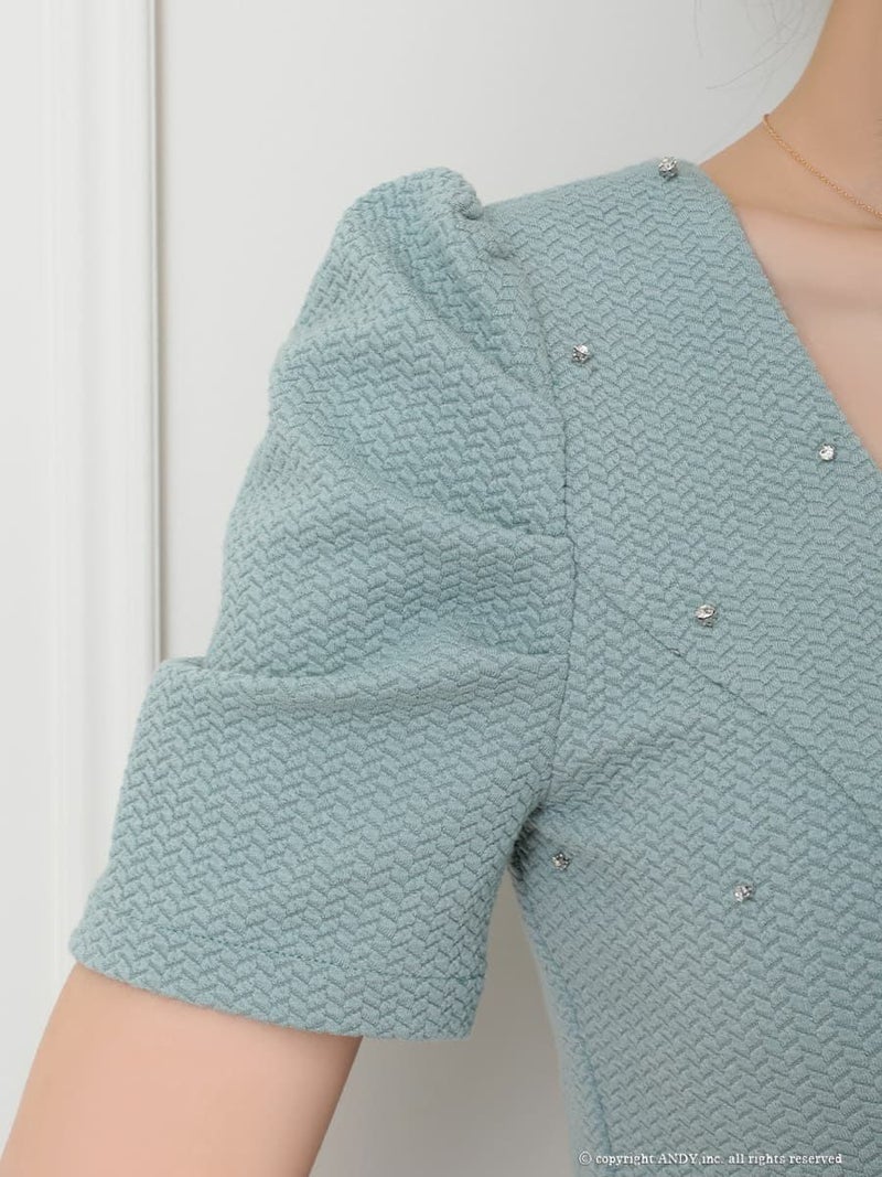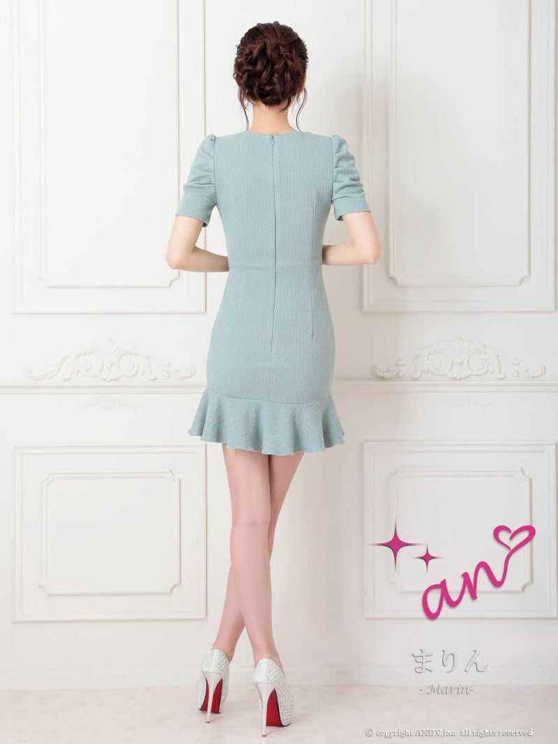 5. [an/アン] 高級 半袖 バストカット ウエストカット ビジュー シアー 裾フリル タイトミニドレス