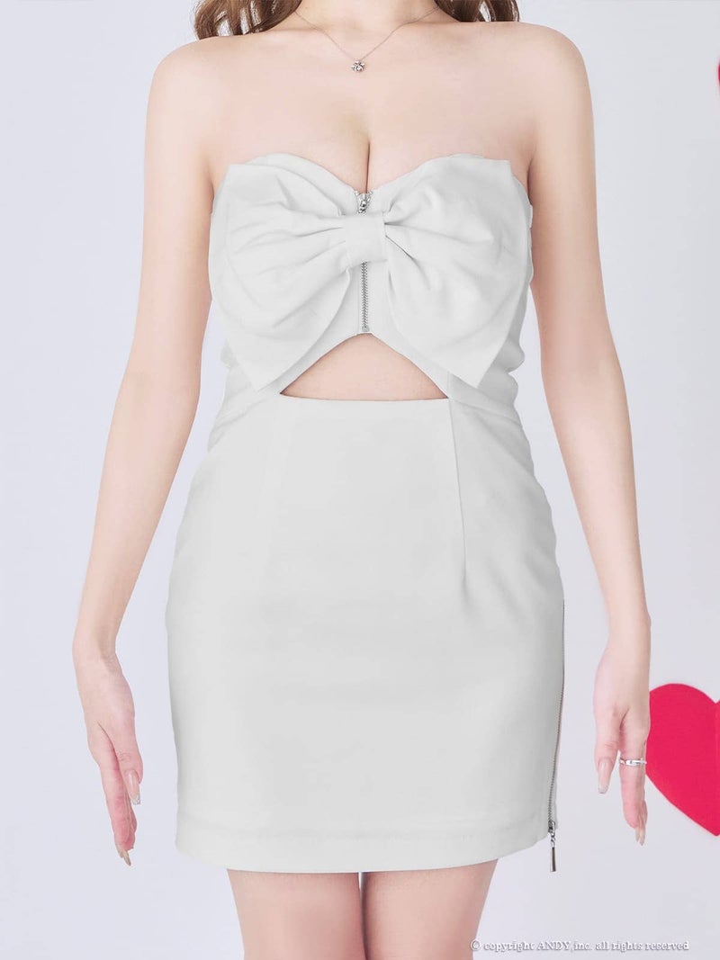 ウエストカットが色気を引き出す♡ [an/アン] 高級 ノースリーブ タイトミニドレス バストカット ジップ リボン ファスナースリット ウエストカット