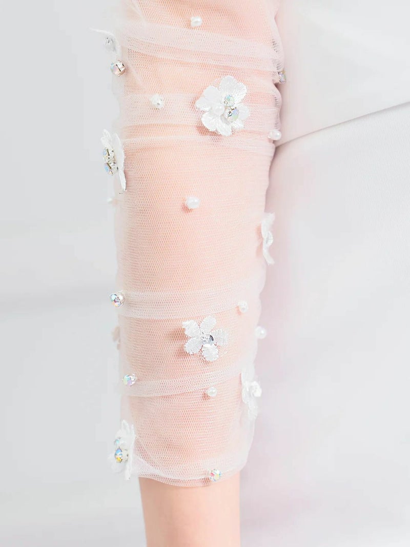 6. [Angel-R/エンジェルアール] 高級 2way 長袖 袖あり 肩出し 二の腕カバー ホルターネック バストカット フラワービジュー 谷間魅せ タイトミニドレス