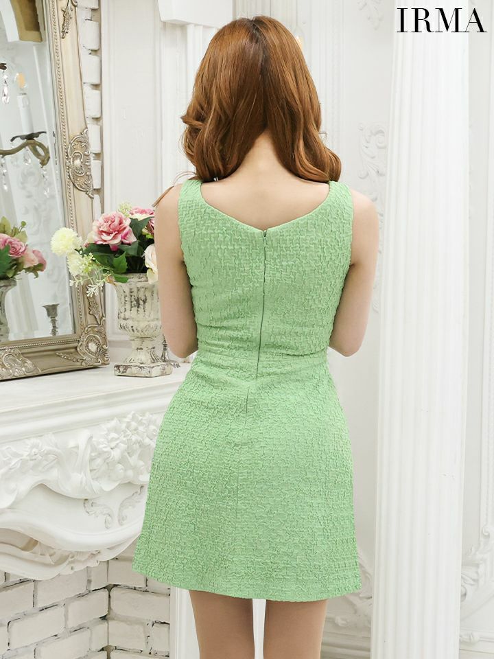キャバドレス ミニドレス [IRMA/イルマ] 高級ノースリーブジップデザインウエストカットワッフルニットフレアミニドレス