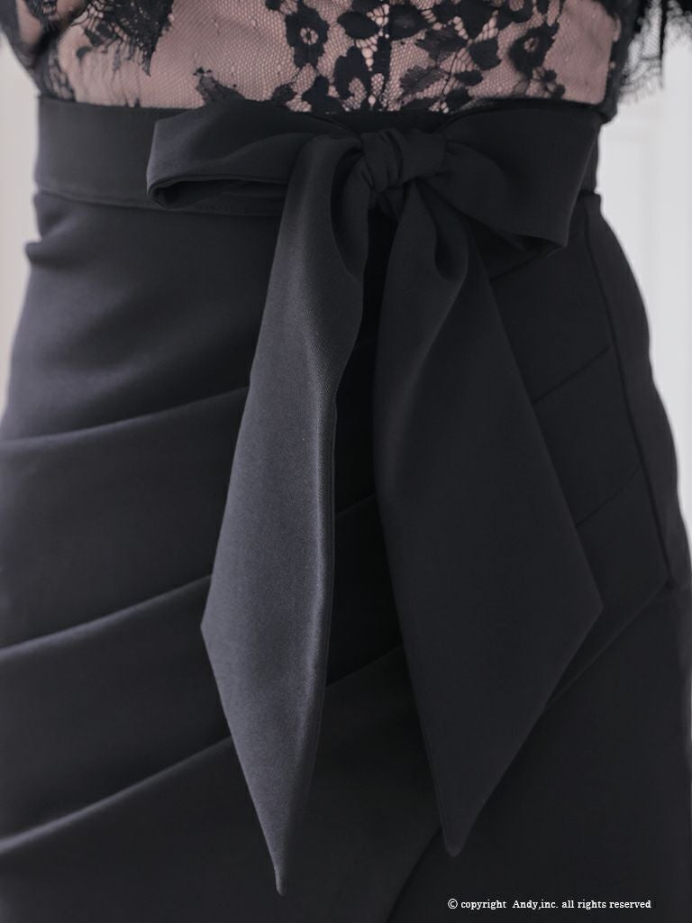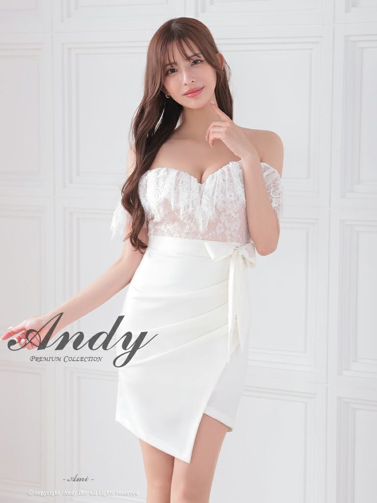 キャバドレス Andy アンディ 高級オフショルダー花柄レースウエストリボンワンカラータイトミニドレス