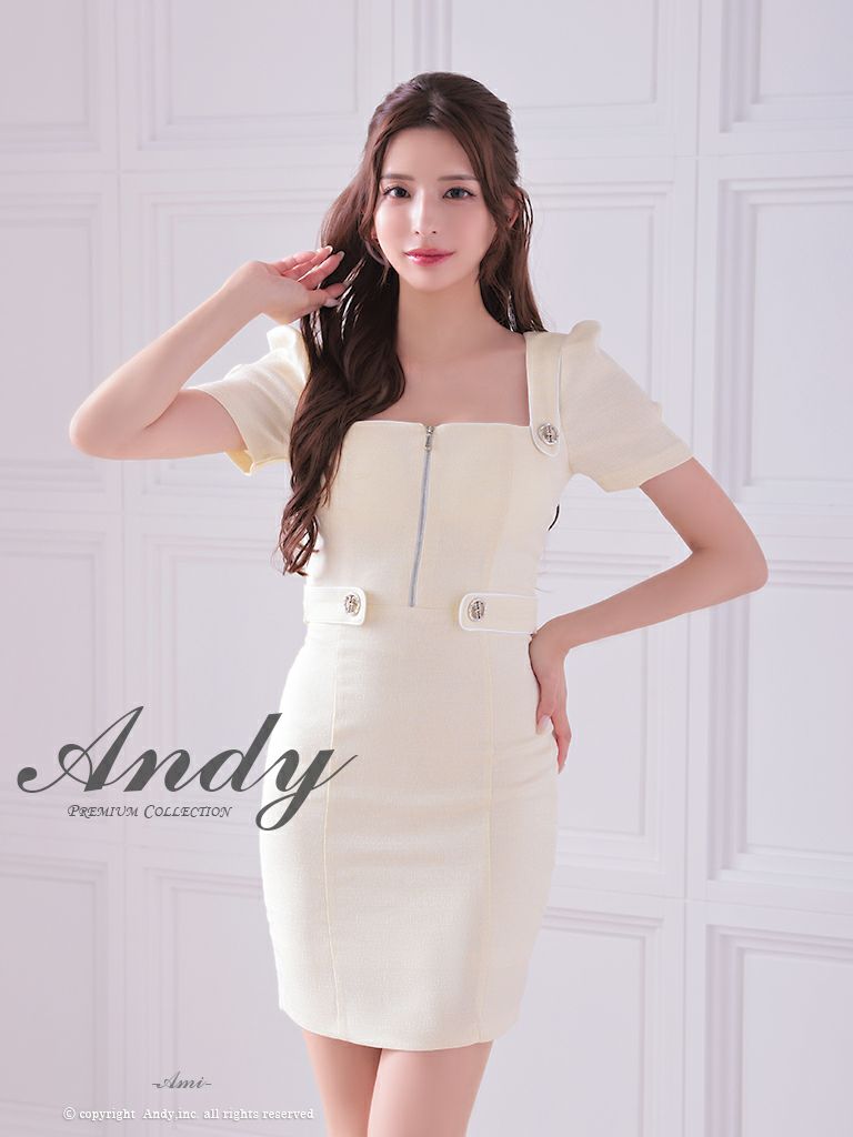 キャバドレス Andy アンディ 高級半袖スクエアネックフロントジップウエストリボンタイトミニドレス
