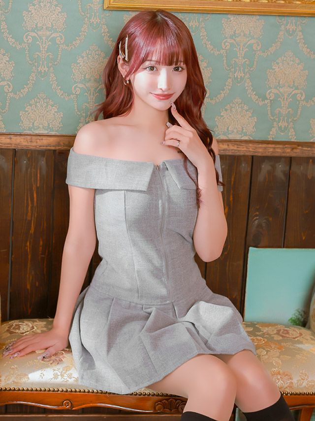 キャバドレス ミニ丈 大きいサイズ フレア Aライン ワンピース プリーツ ジップ オフショル