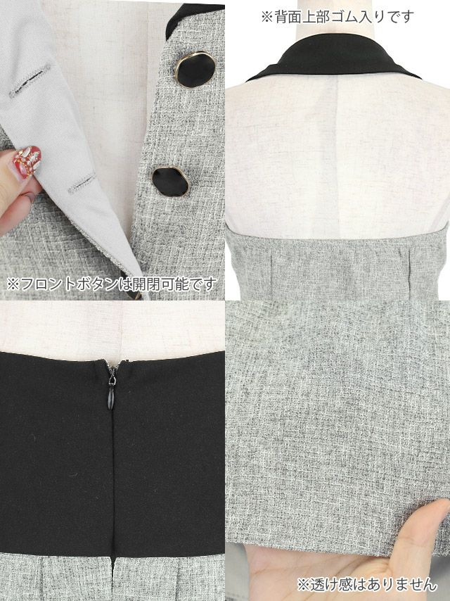 ミニドレス Aライン セットアップ ホルターネック 襟付き プリーツ バイカラー グレー XL キャバドレスのカラーバリエーション