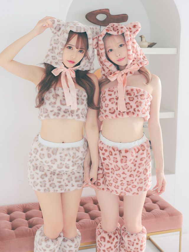 へそ出しもこもこレオパードタイトスカートセットアップセクシーペア猫アニマルのセット内容