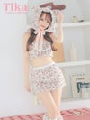 3. SALE [コスプレ] へそ出しベアトップ×タイトスカートセットアップセクシーもこもこレオパード猫アニマル [3点セット] (トップス/スカート/フード/レッグカバー)