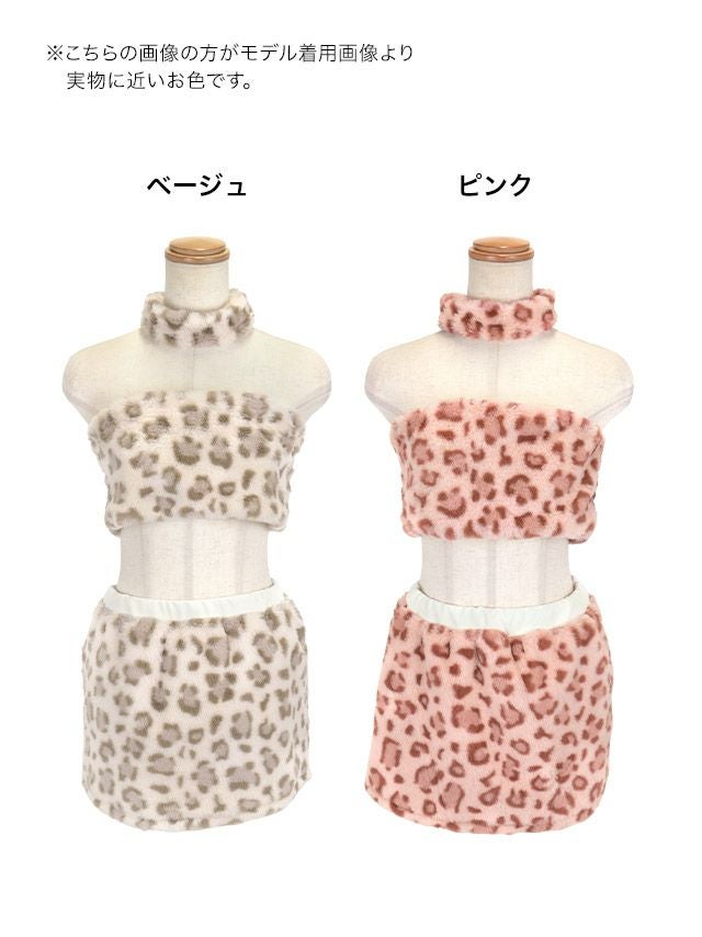 へそ出しもこもこレオパードタイトスカートセットアップセクシーペア猫アニマルのカラバリ画像