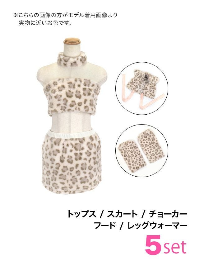 5. SALE [コスプレ] へそ出しベアトップ×タイトスカートセットアップセクシーもこもこレオパード猫アニマル [3点セット] (トップス/スカート/フード/レッグカバー)