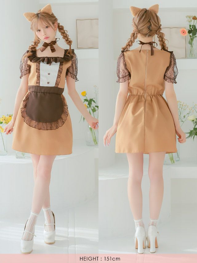 5. SALE [ハロウィン] メイド コスプレ 猫 キャラメル キティ フレアスカート ガーリー アニマル 3点セット [カチューシャ+チョーカー+ワンピース]