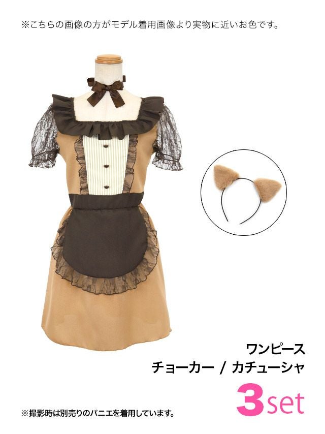 3点set メイドデザインキャラメルキティフレアスカートガーリー猫アニマルコスプレのセット内容