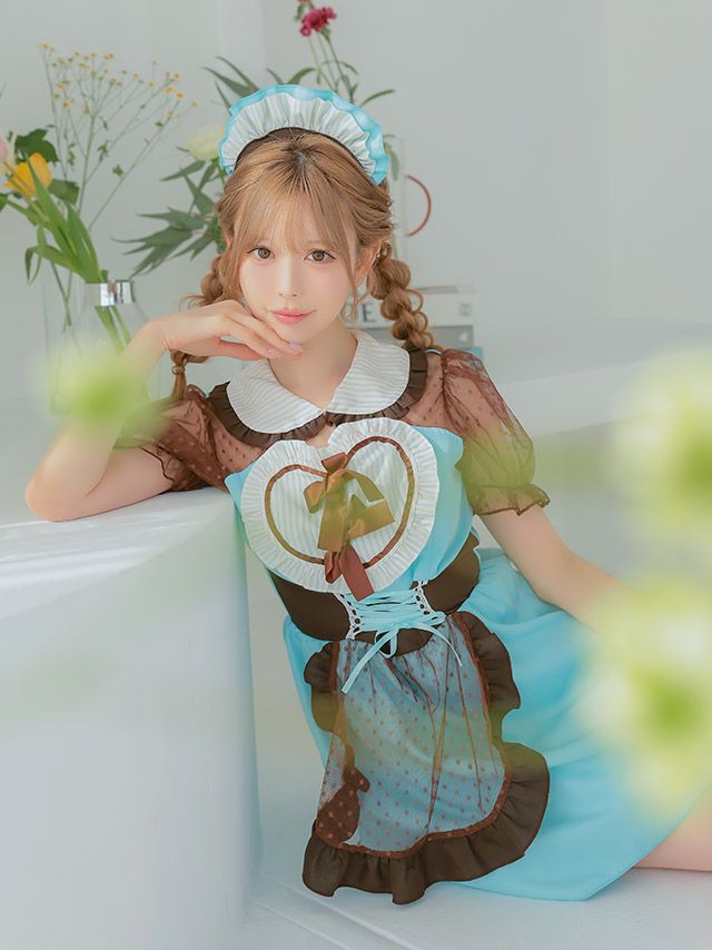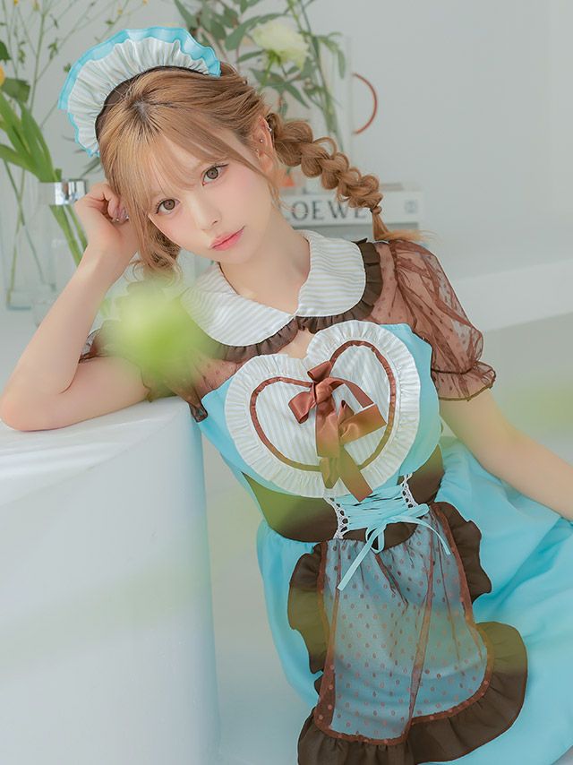 パッと目を惹くミントカラーのメイドコスチューム♡
