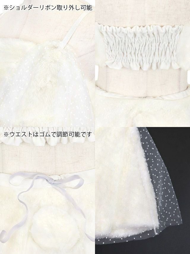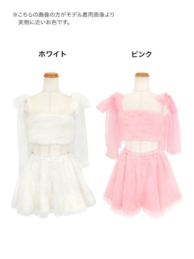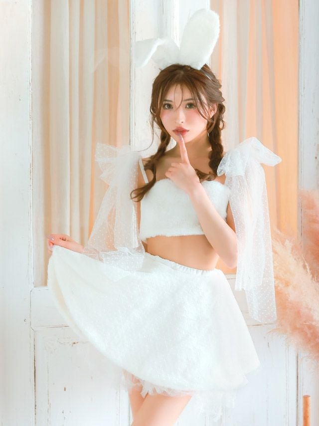 3. SALE [コスプレ] イースター バニー コスプレ もこもこ ドットチュールリボン へそ出し セクシー フレアスカート ガーリー ツイン 7点セット (トップス/スカート/ショルダーリボン/カチューシャ/リボン/尻尾/レッグウォーマー)