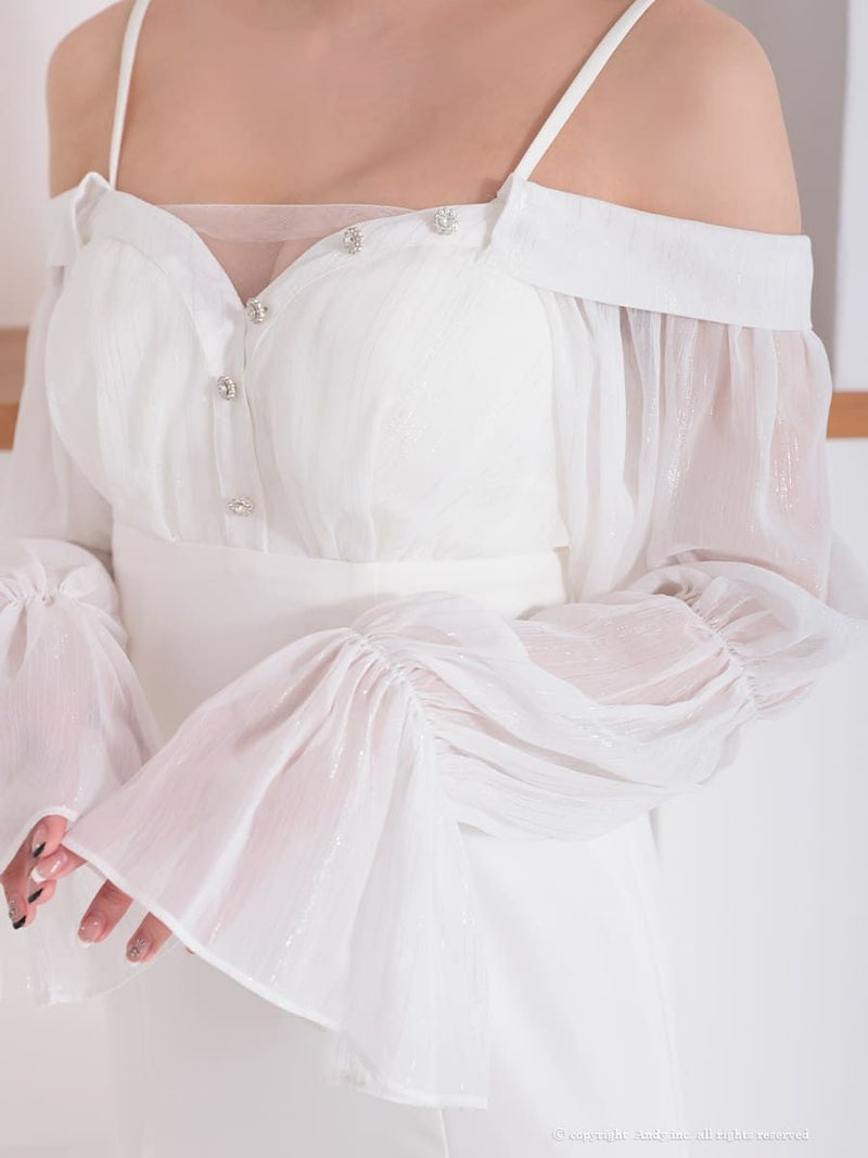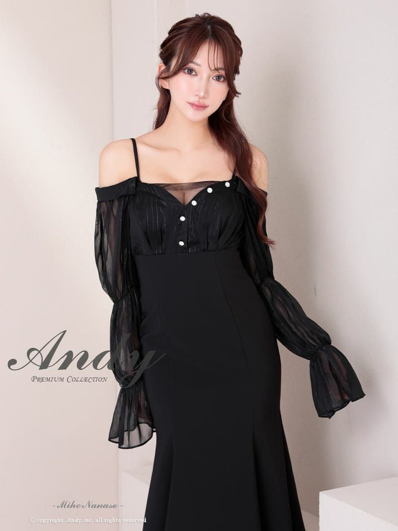 優美なシルエットを作り出すドレス♡ [Andy/アンディ] 高級 タイト ロングドレス 長袖 オフショルダー 上品 袖あり