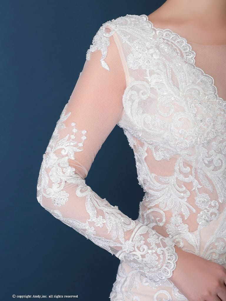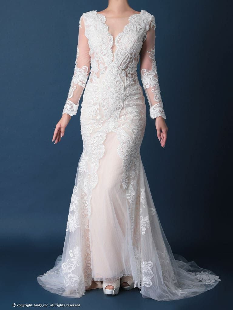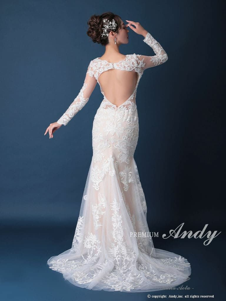 6. [PREMIUM Andy/プレミアムアンディ] 高級 バースデー 長袖 刺繍 レース バックカット マーメイド タイト ロングドレス