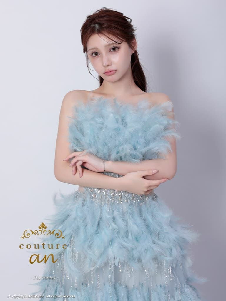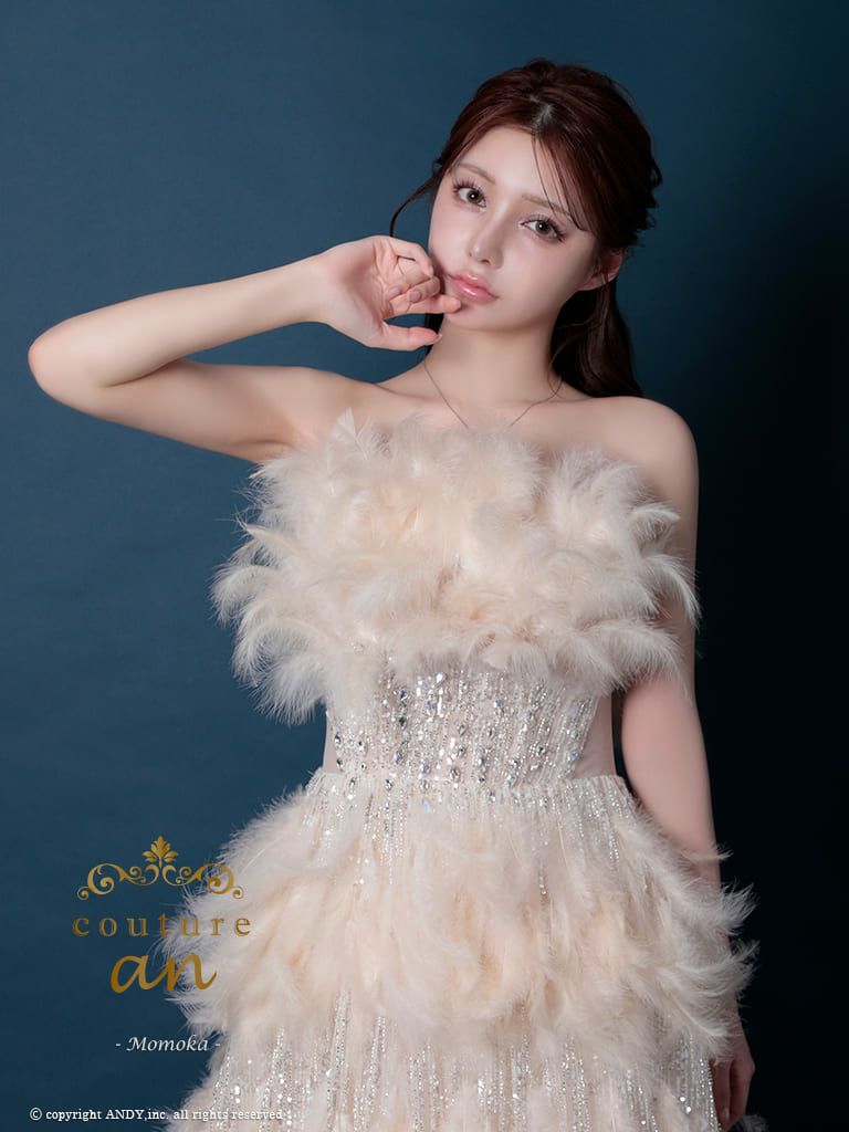 キャバドレス couture an クチュール アン 高級 ノースリーブ フェザー ビジュー スパンコール ラメ バースデー Aライン キャバドレス