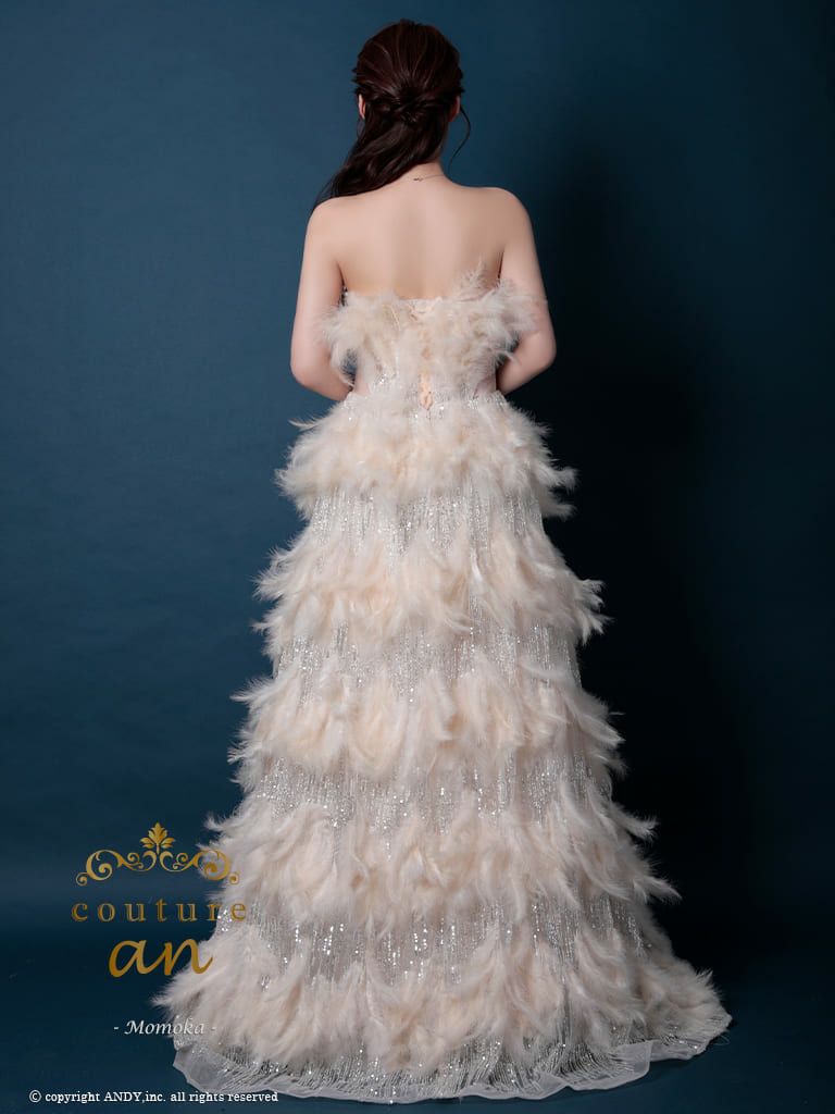 3. [couture an/クチュールアン] 高級 バースデー ベアデザイン フェザー ビジュー スパンコール ラメ Aラインロングドレス