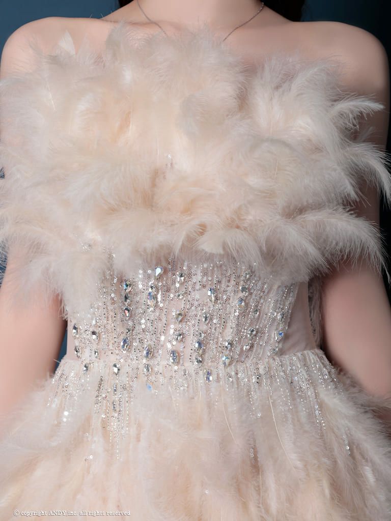 5. [couture an/クチュールアン] 高級 バースデー ベアデザイン フェザー ビジュー スパンコール ラメ Aラインロングドレス
