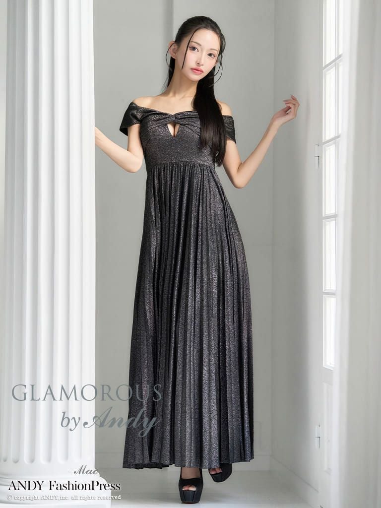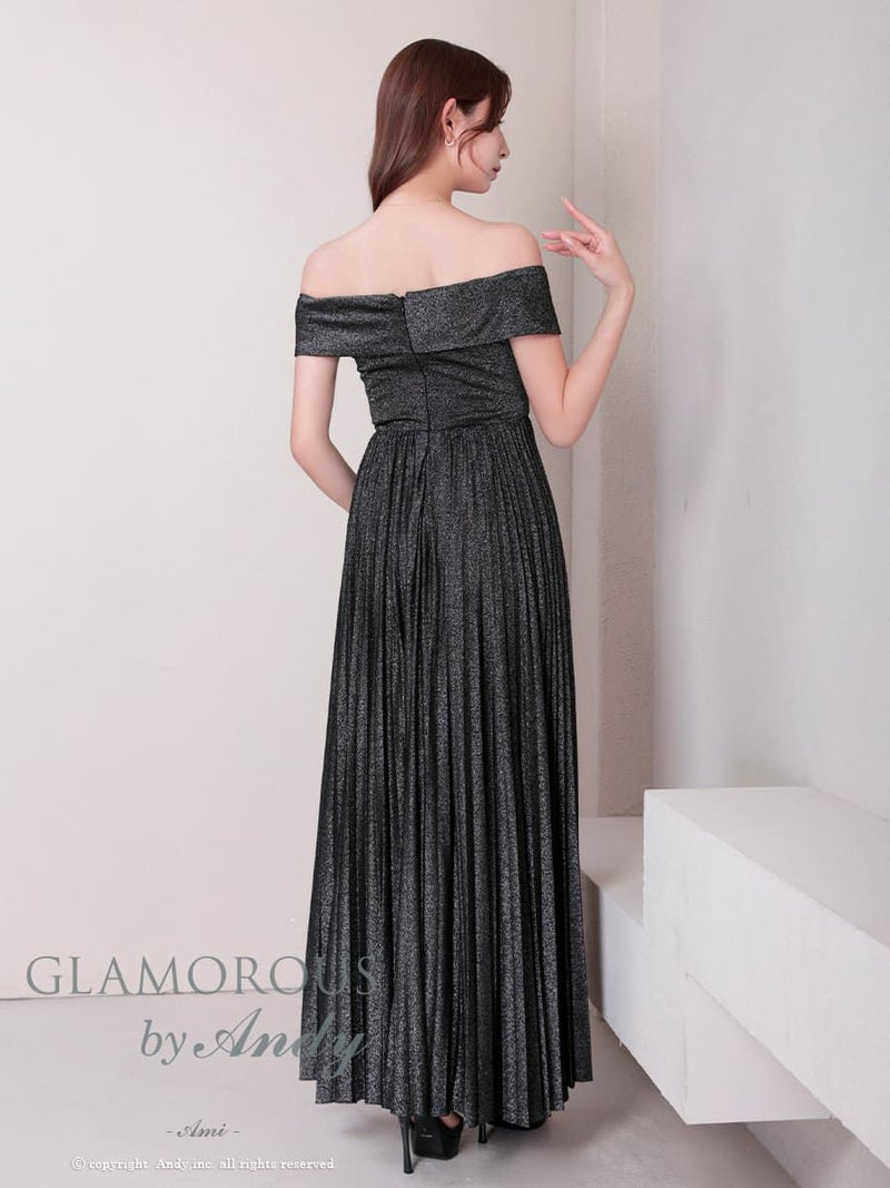 キャバドレス AndyGLAMOROUS アンディグラマラス オフショルダー タック シンプル ラメ バストカット プリーツ Aライン ロングドレス
